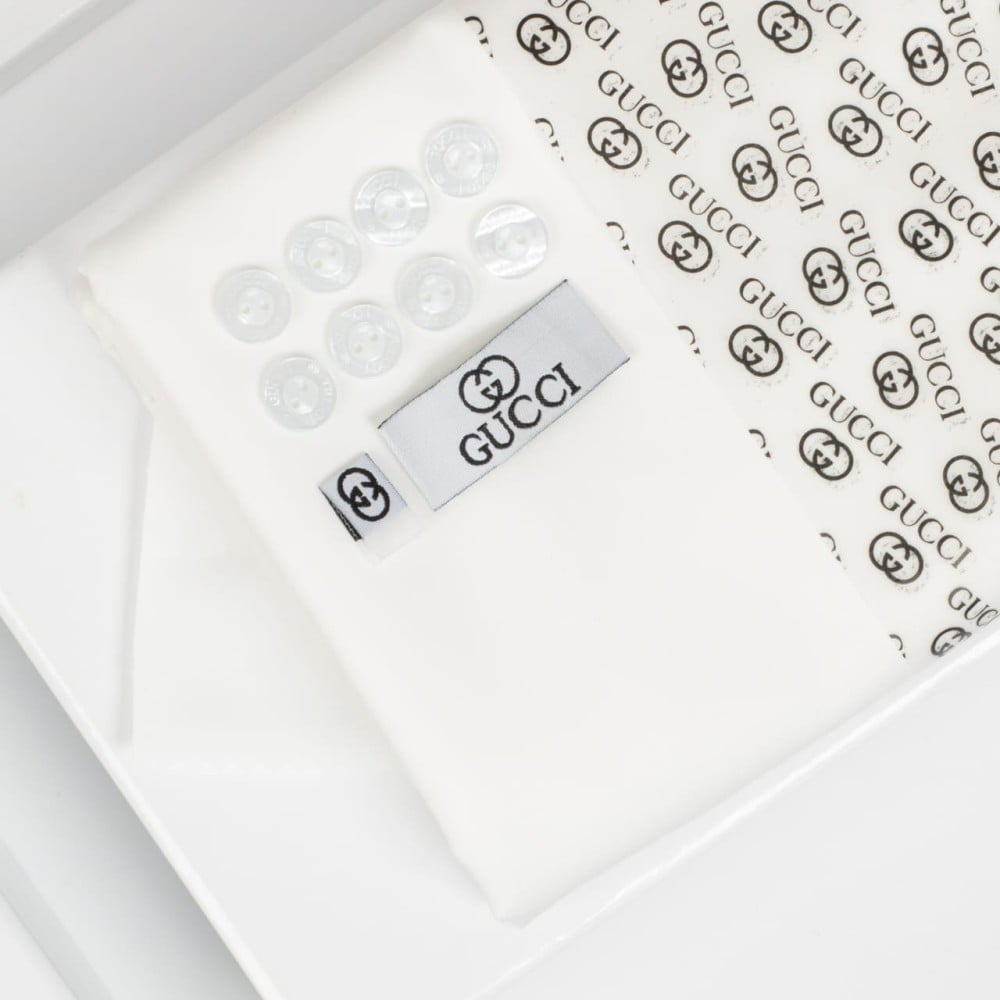 المظهر اللامع:يُضفي اللمعان الطبيعي لقماش قوتشي الأبيض مظهرًا جميلاً وراقياً.